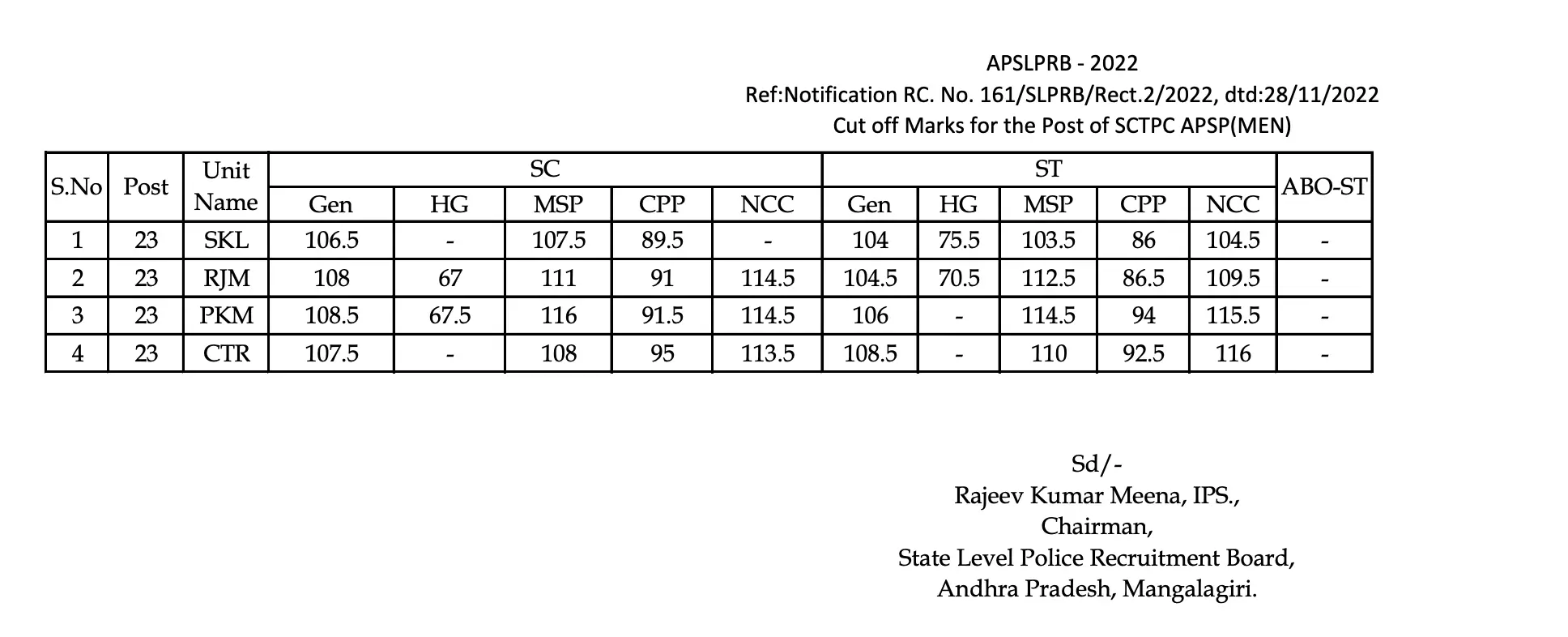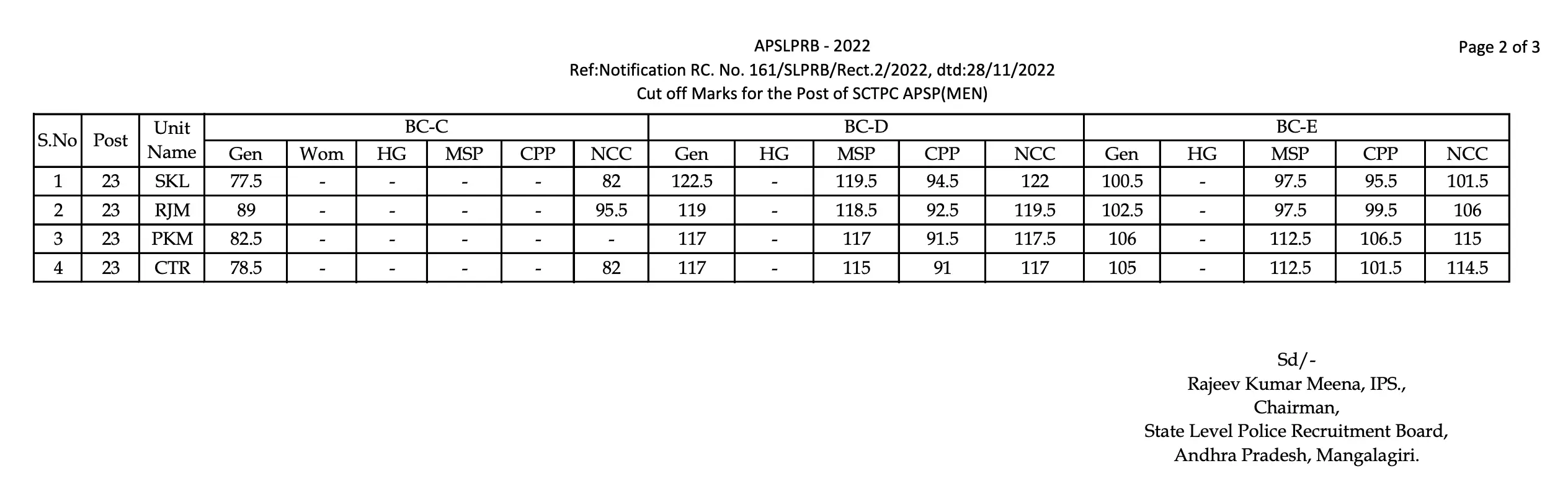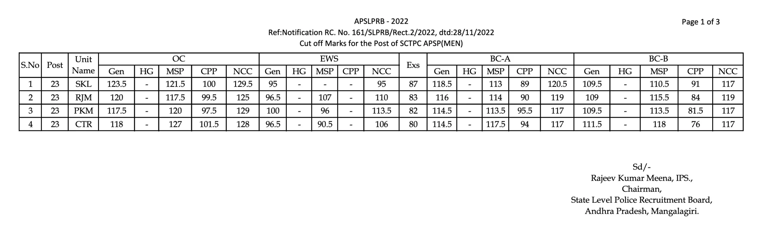 AP Police Prelims Cut Off 2025 for SCT RSI (APSP) (Men) Posts