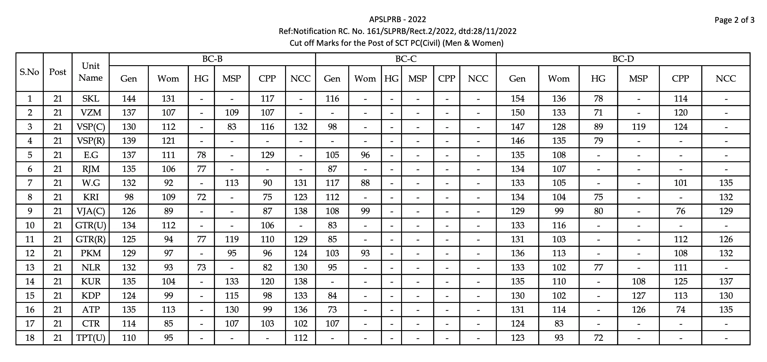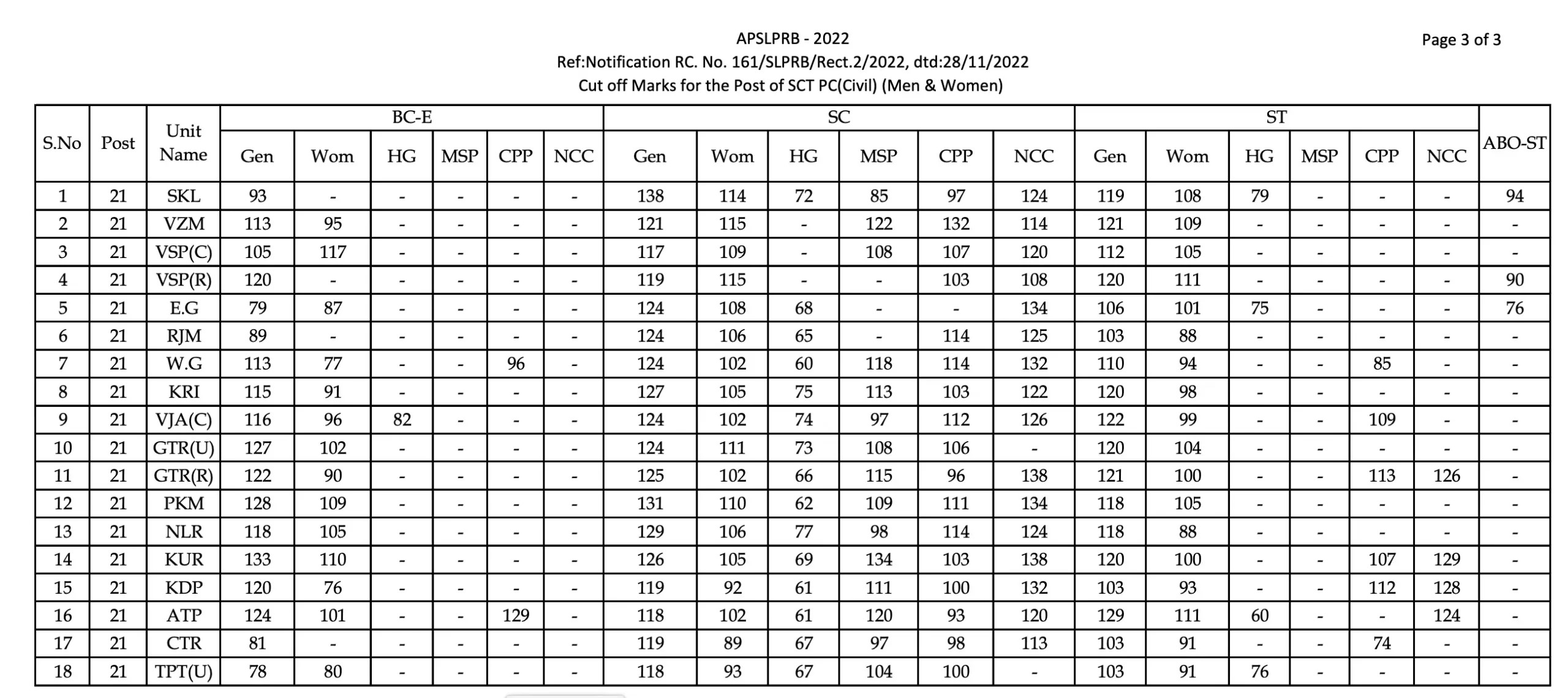 Candidates who appeared in the AP Police Constable Final Written Exam can check category-wise AP Constable Cut Off Marks 2025 for SCT PC (Civil) and SCT PC (APSP) from the below-attached snippets.