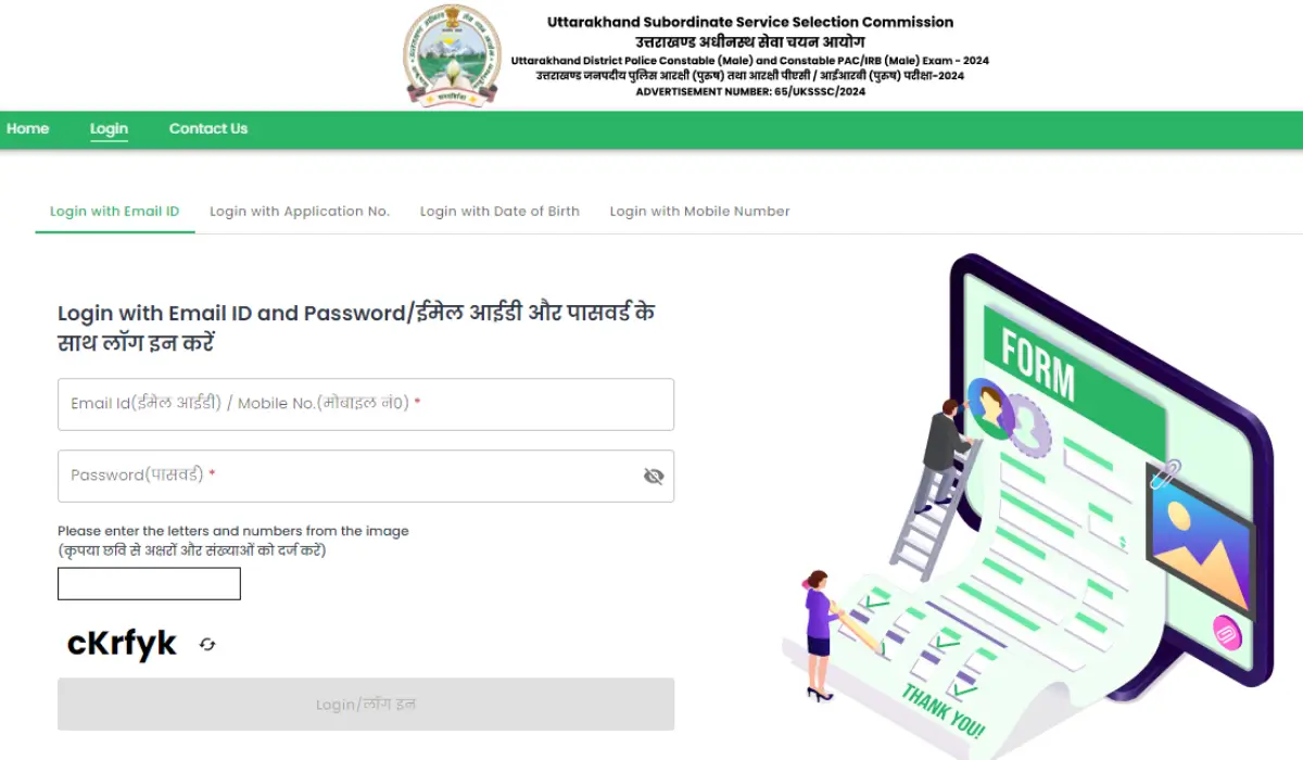 - Candidates are redirected to a new login page where candidates are required to choose among four options: Login With Email ID and Password, Login With Application Number, Login with Date of Birth, and Login with Mobile Number.