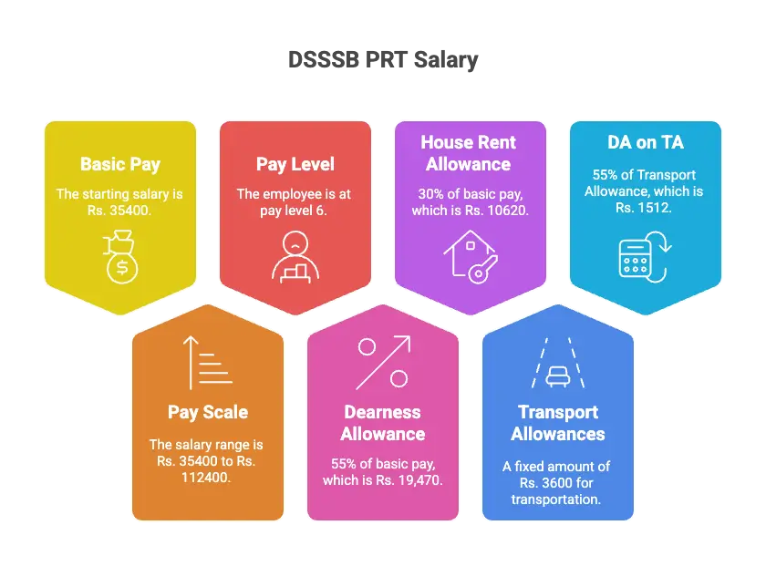 As per DSSSB PRT Notification 2025 pdf, the appointed candidates for Primary Assistant Teacher posts will be paid a salary in Pay Scale Rs. 35400/- to Rs. 112400/- (Pay Level 6). Check the detailed DSSSB PRT Salary structure 2025 from here.