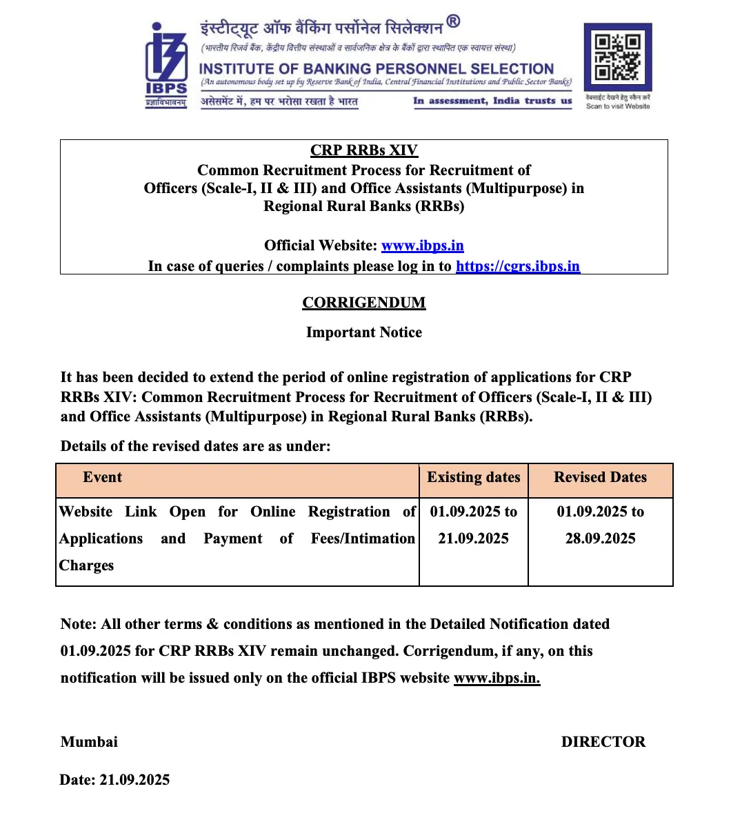 | IBPS RRB Official Notification | 31st August 2025 |
