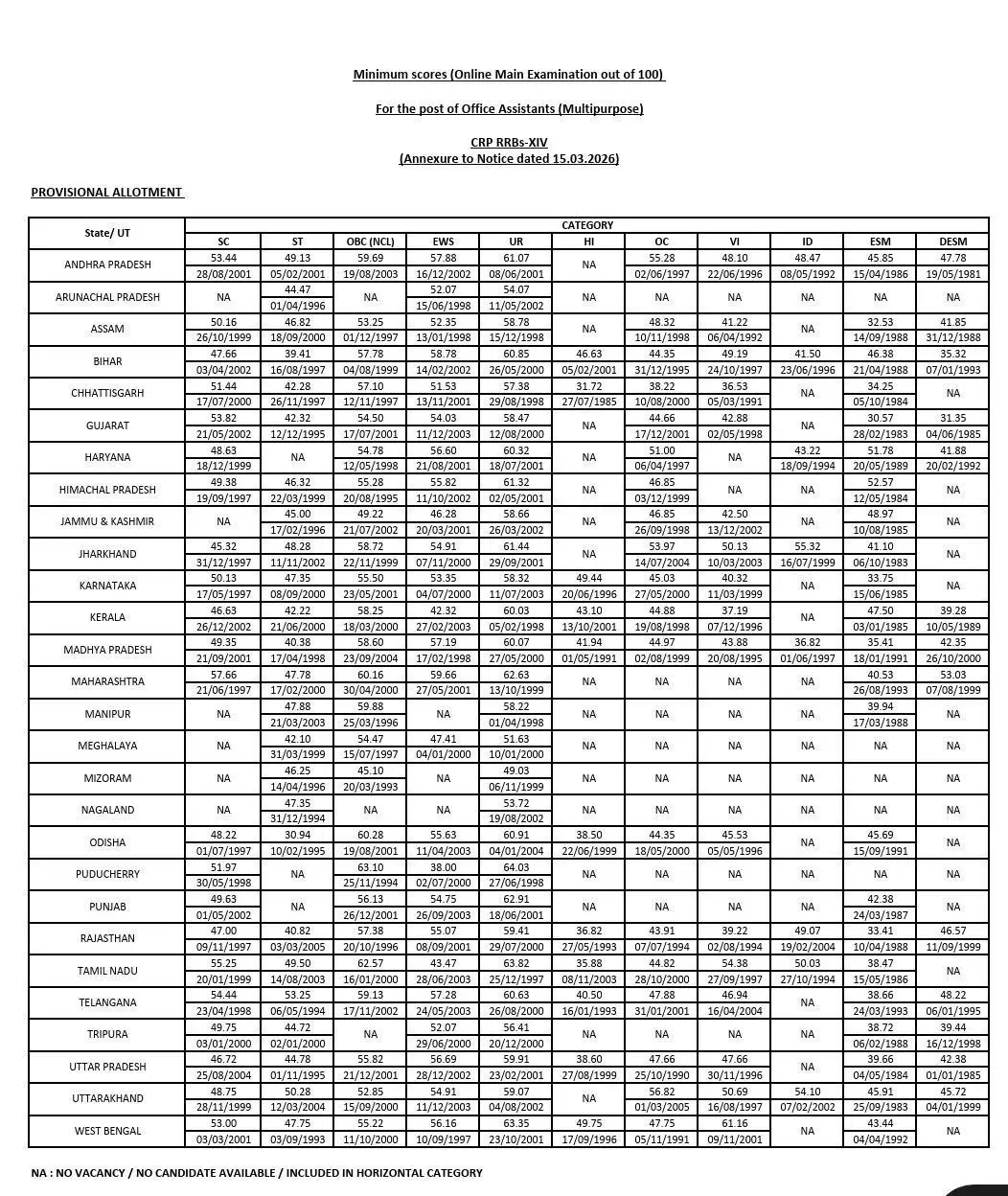 The cut off marks are the minimum marks scored by the last selected candidate in the prelims exam, which are the deciding factor for selecting candidates for the mains exam. The prelims cut off marks for IBPS RRB 2025 have already released, and now the mains cut-off marks has been released along with IBPS RRB Clerk Mains Result 2026 and mains score card on 15th March 2026.