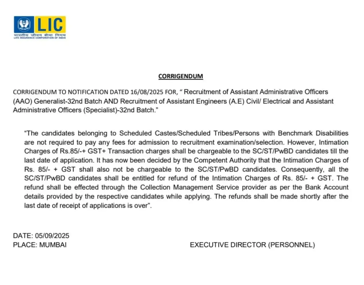 | LIC AAO 2025 Notification | 16th August 2025 |