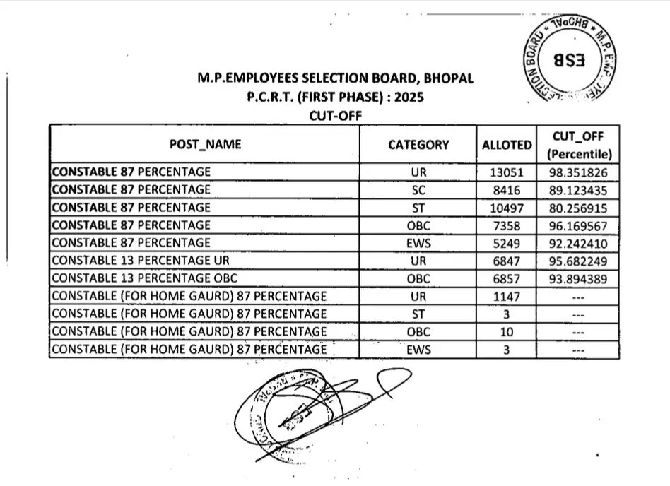 MP Police Constable Cut Off 2026 Out- Click to Check