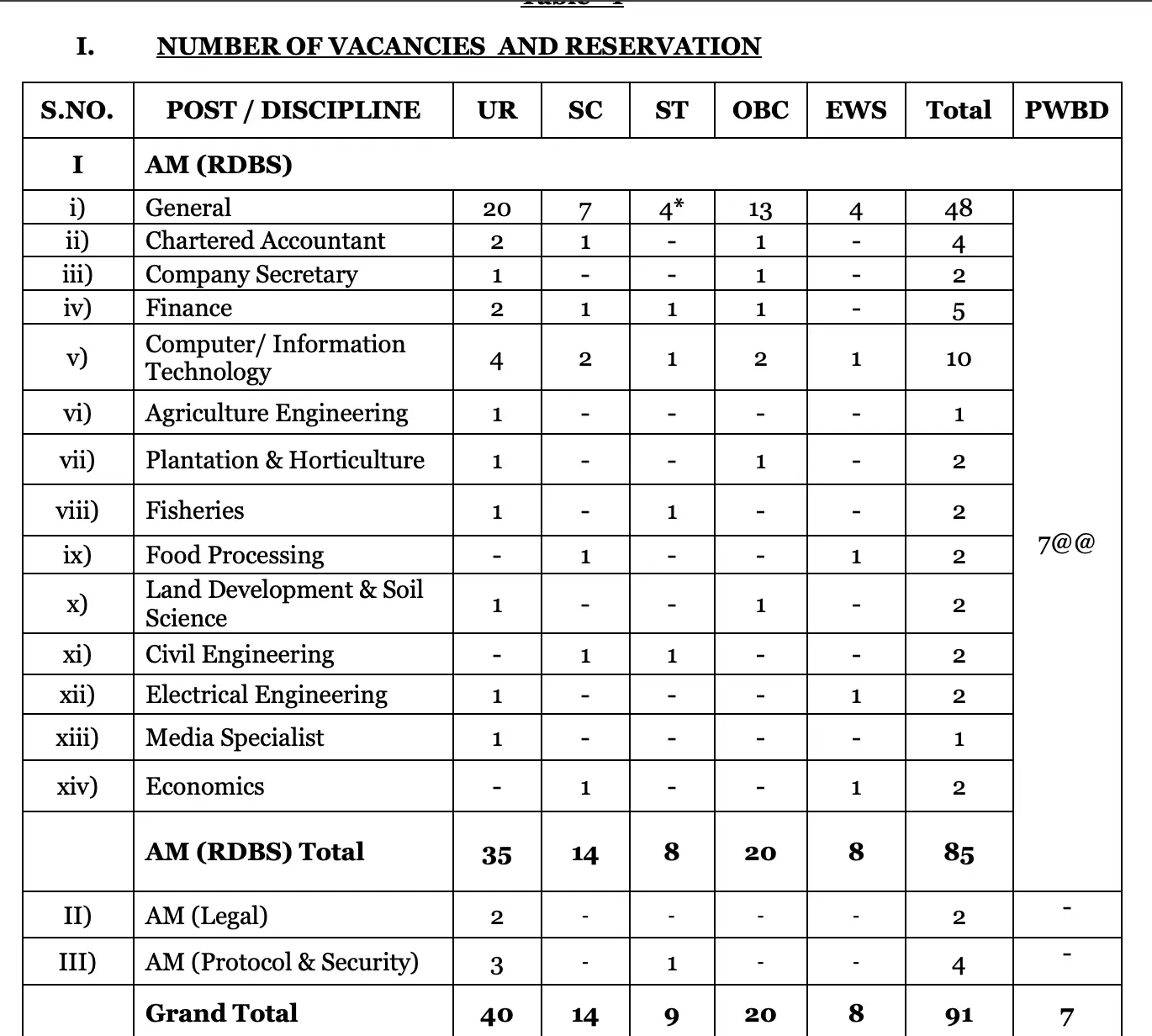 | Post | SC | ST | OBC | EWS | UR |