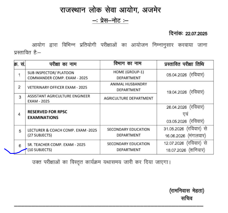 | RPSC 2nd Grade Exam Date 2025 | 12th and 18th July 2026 |