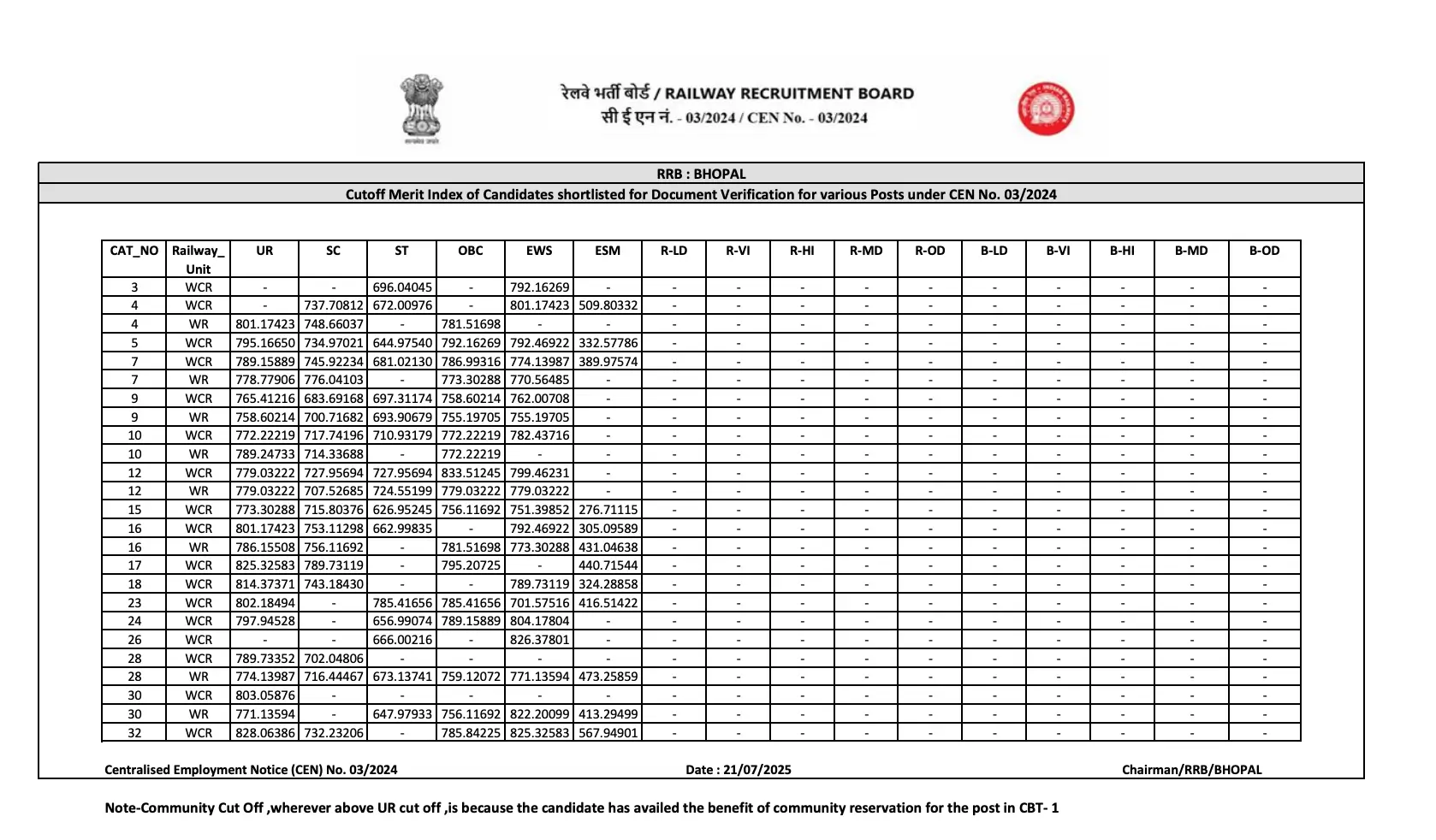 RRB JE CBT 2 Cut Off 2025 [Bhopal]