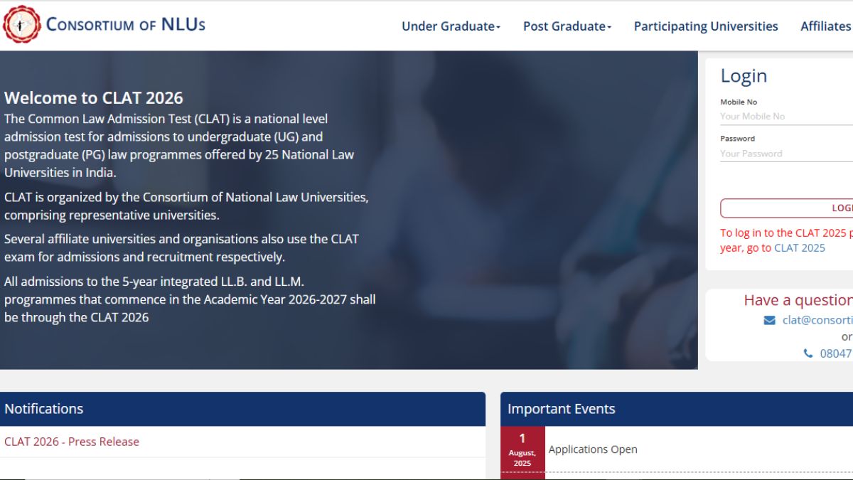The Consortium of National Law Universities (NLUs) has activated the online portal containing the CLAT Application Form 2026 at its official website. All the aspirants need to note that the CLAT Application Form 2026 has been activated on August 01 at its online portal, i.e, www.consortiumofnlus.ac.in. The last date to register for the CLAT 2026 Exam October 31, 2025 at the official portal. The online link connecting to the CLAT 2026 Registration Form has been added to the article below.