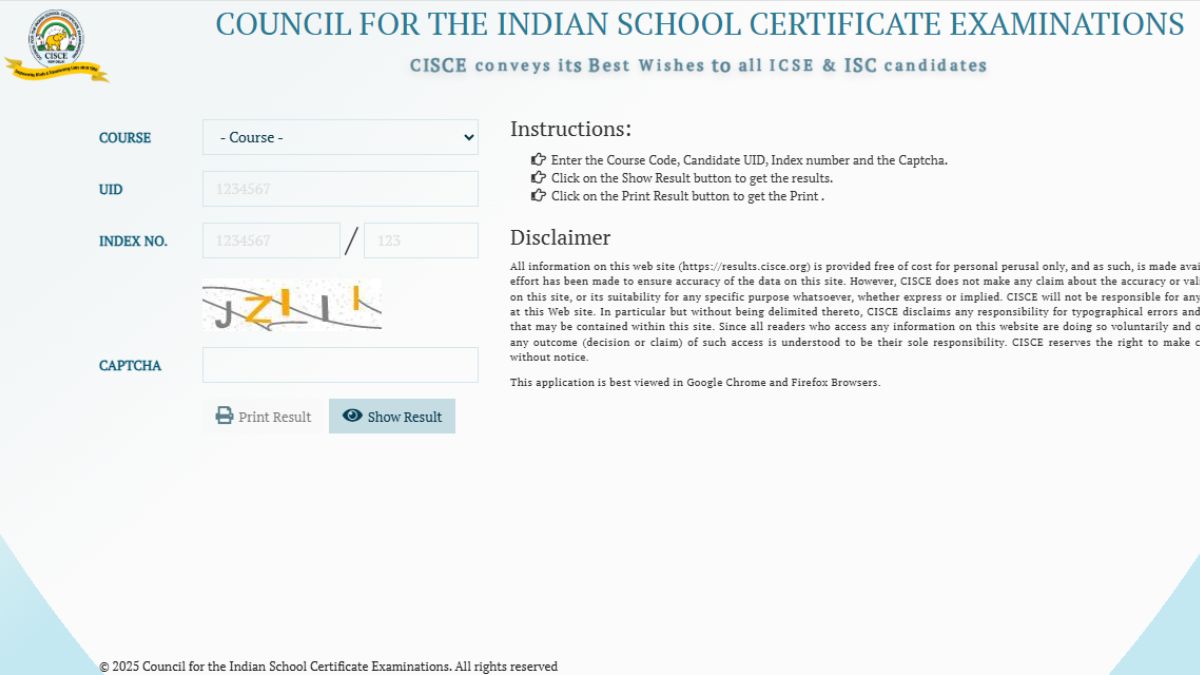 Step 6: A new page with the ICSE ISC Improvement Result 2025 will be displayed on the screen.