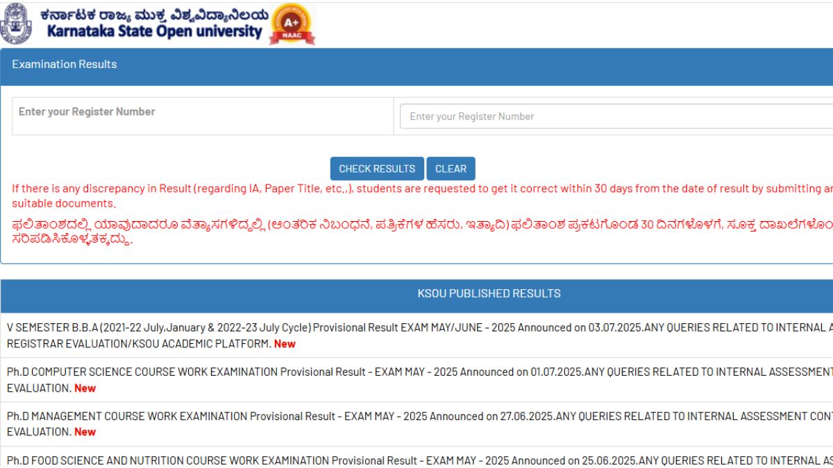 The KSOU University is a distance learning university in Mysore, Karnataka. Established in 1996, this state university is home to several diplomas, certificates, bachelor’s, master’s, PG Certificate, and PhD-level courses. As a step to test students with their academic skills and understanding of the syllabus, the university conducts the semester-end examination. Following the previous trends, the even semester examinations were conducted in May/ June 2025 for which the result is now being released at the official website of the university to ensure that all the students have direct access to it.