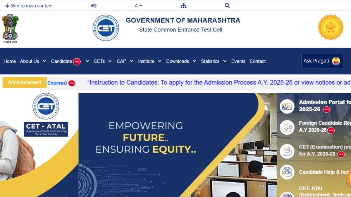 Step 1: Visit the official website of the State Common Entrance Test Cell, Maharashtra State at https://cetcell.mahacet.org/