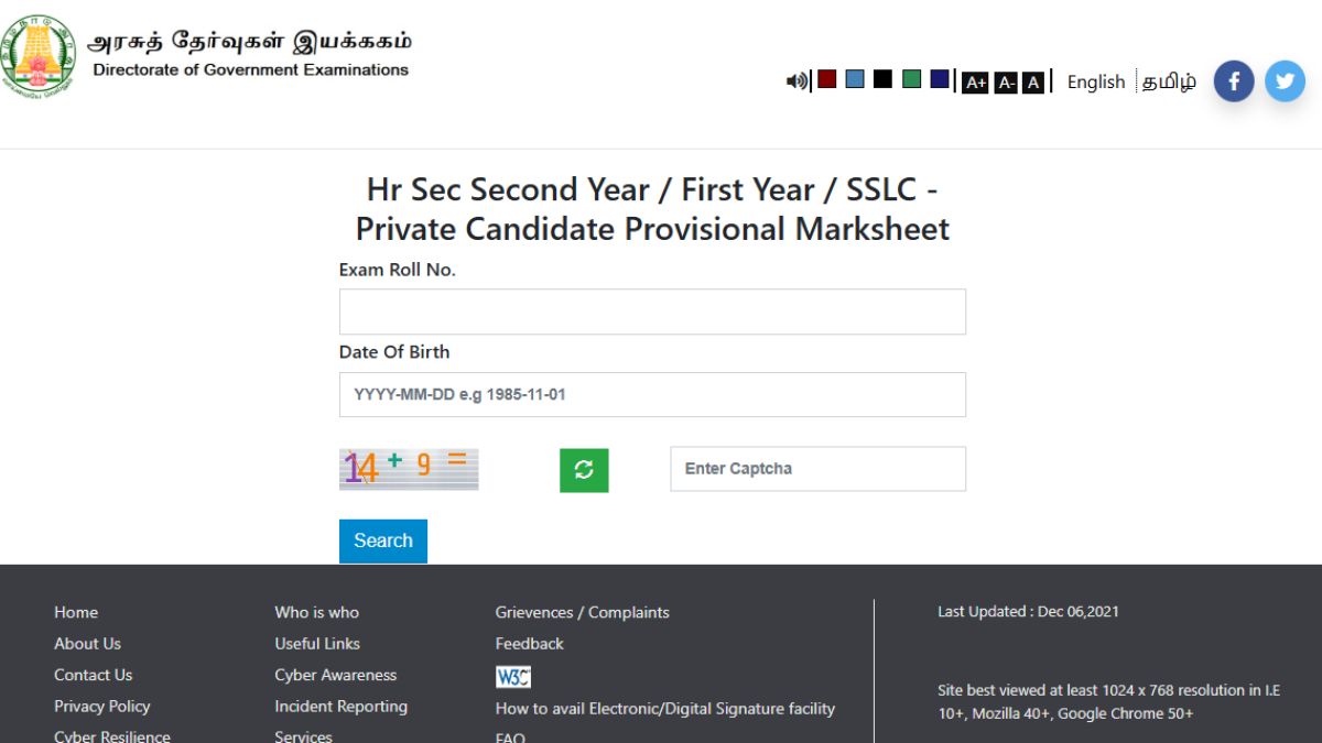 Step 1: Go to the official website of the Directorate of Government Examinations, Tamil Nadu i.e., www.tnresults.nic.in or https://www.dge.tn.gov.in/.