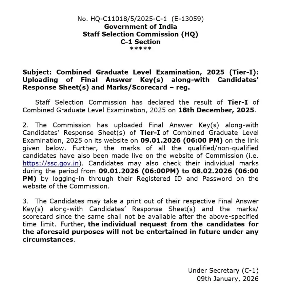 | SSC CGL Final Answer Key 2025 | 9th January 2026 |