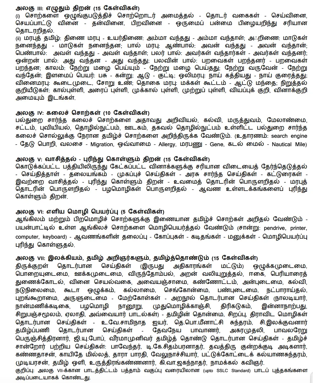 TNPSC Group 2 Prelims Tamil Eligibility Test Syllabus