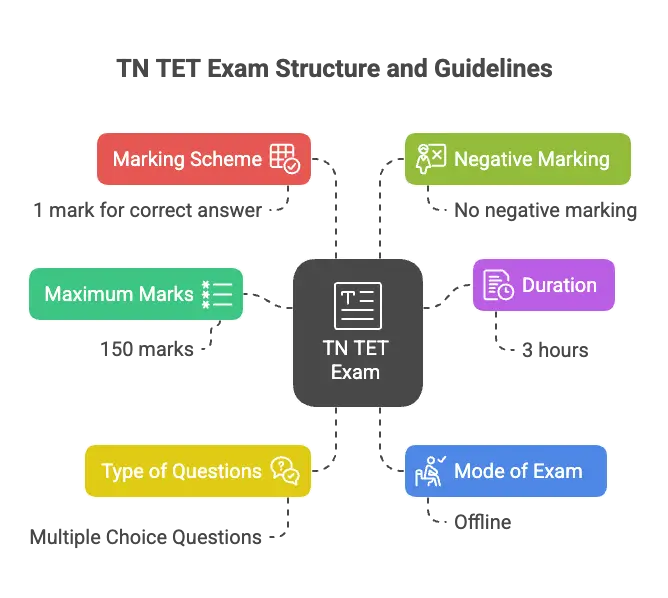 After checking the syllabus, Candidates can also check the TNTET exam pattern 2025. The TNTET exam is divided into two papers. Both papers are conducted separately and consist of 150 questions and the exam duration of each paper is 3 hours. There is no negative marking for incorrect or blank answers. TNTET 2025 marks distribution for Paper 1 and Paper 2 is given below in the tabulated form.