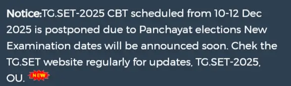 On behalf of the Telangana State Government, Osmania University is responsible for conducting the Telangana State Eligibility Test (TG-SET) 2025 to assess the eligibility the candidates for Assistant Professor and Lecturer posts in Telangana universities and colleges. As per the notice released by the officials, the TG SET Exam 2025, which was scheduled for 10th, 11th, and 12th December 2025, has been postponed. The new TS SET Exam Date 2025 for the CBT Exam will be announced soon at www.telanganaset.org.