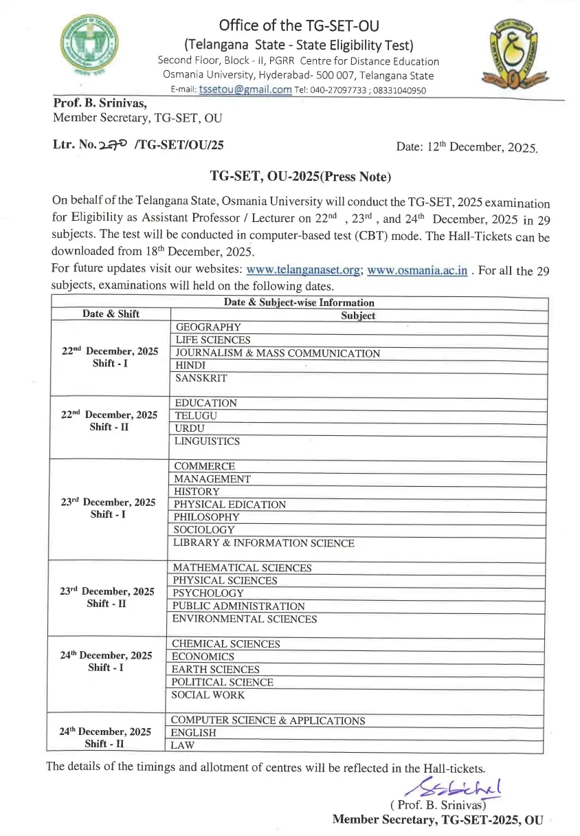 | TS SET Exam Date 2025 | 22nd, 23rd, and 24th December 2025 |